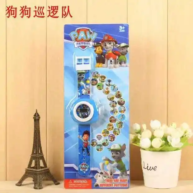 Addition Information of Barking Dog Team 20 Figure Projection Clock Children Electronic Waist Watch 3D Glowing Toy Kinderga